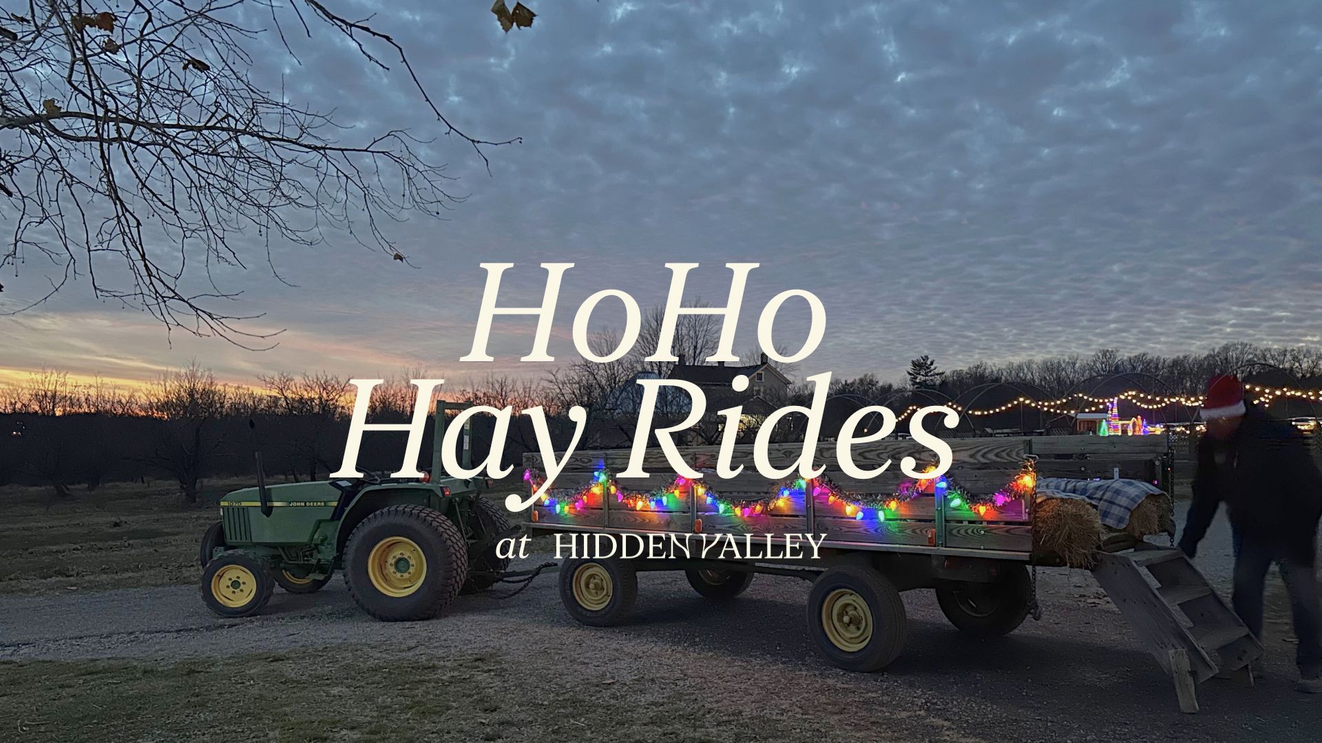 Celebrate the season with Ho-Ho Hayrides at Hidden Valley Orchards! Enjoy cookies, cocoa, s’mores, letters to Santa, a magical lighted ride, and Sproutsville Christmas Village—fun for the whole family!