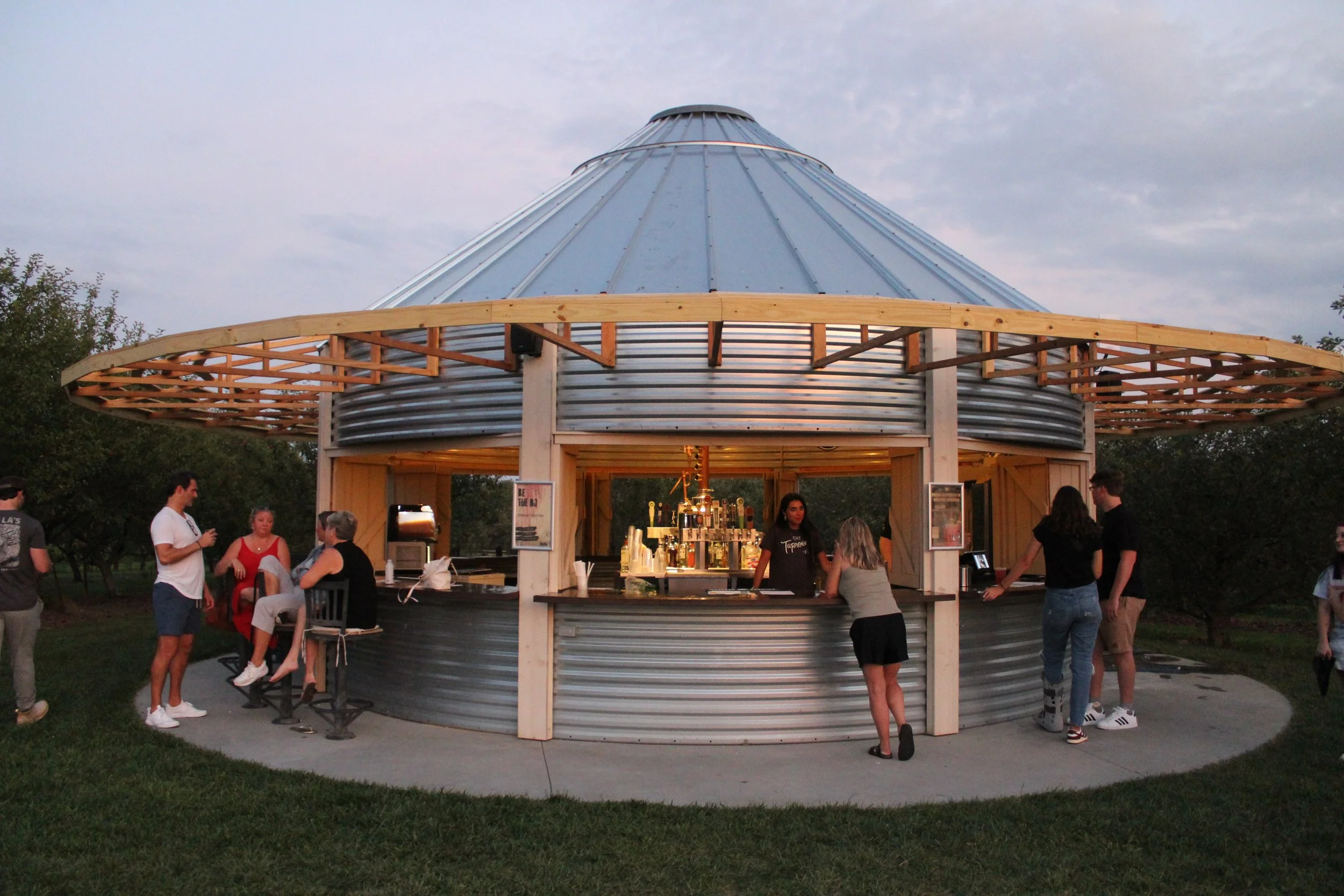 Drop by our laid-back farm bar for cold refreshments — beer on tap, slushies, iced tea, and lemonade. Soak up the orchard by the Camp Fire Lawn.