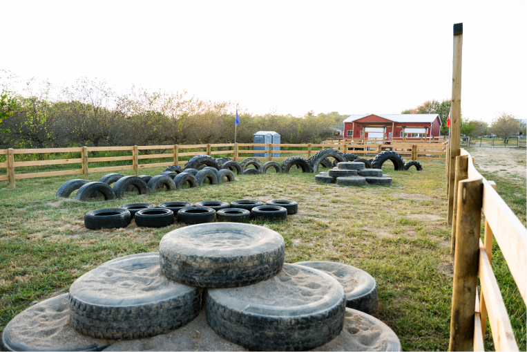 A corral full of giant balls for bouncing, rolling, and chasing.