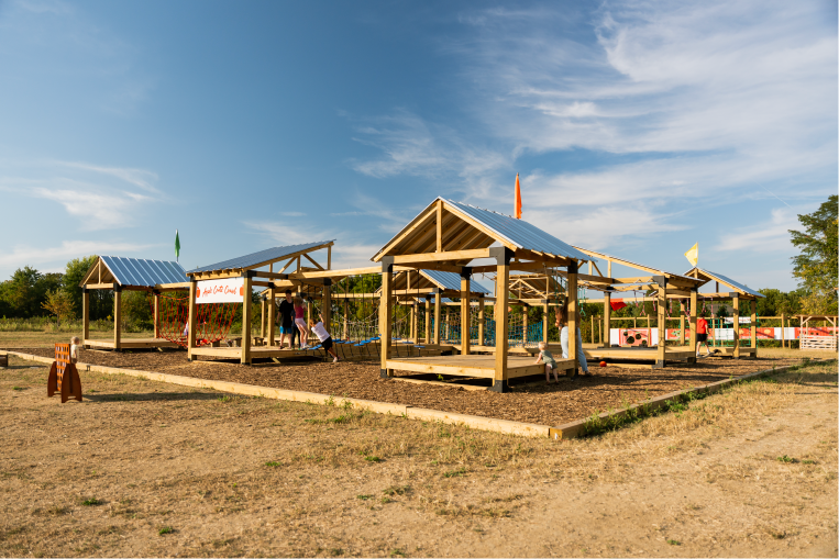 A kid-sized village of playhouses built for exploring, pretending, and endless fun.