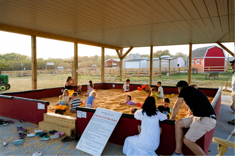 Dive into a giant bin filled with dried corn kernels — like a sandbox, but farm-style.