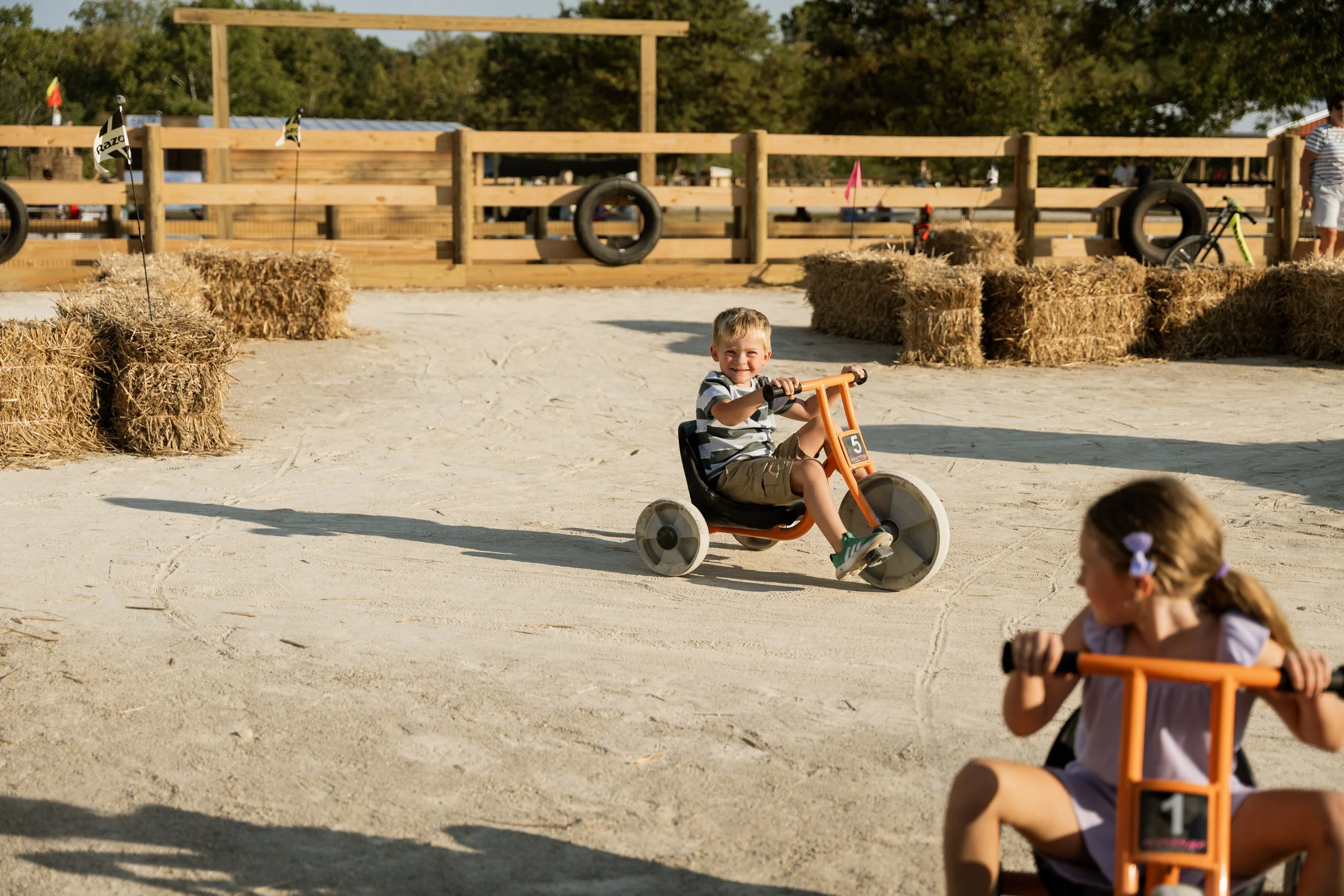 Hop on a pedal kart and race through twisting tracks, weaving like a speedy barnyard rat on the run.